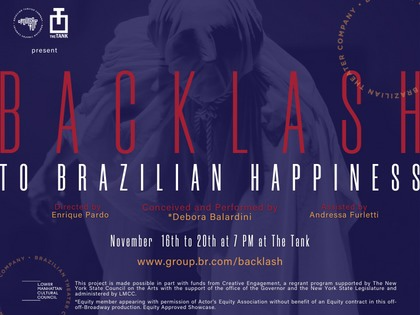 In Backlash to Brazilian Happiness, Debora Balardini delivers a poignant solo performance, offering a unique perspective as a Brazilian-American multiracial woman navigating life in the United States.