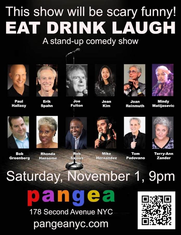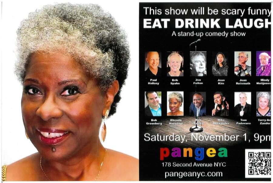 Actor / comedian Rhonda “Passion” Hansome, (SiriusXM “John Fugelsang’s Tell Me Everything”. Showtime At The Apollo”) will be among the performers featured at Eat Drink Laugh live comedy showcase on Saturday, November 1st @ Pangea Restaurant-Cabaret in Manhattan’s East Village. Rhonda will be joined by host Paul Hallasy and a “scary funny” lineup including: Eric Spahn, Joe Fulton, Jean Kim , Joan Reinmuth, Mindy Matijasevic, Bob Greenberg, Rob Sajous , Mike Hernandez, Tom Padovano and Terry Ann Zander. Located at 178 Second Avenue (11th Street), Pangea can be reached by taking the “N” or “R” train to 8th Street or the #6 to Astor Place in Manhattan. Tickets are $10 in advance, $15 at the door and there is a $20 minimum. All sales are final. Seating is first come first serve. Please arrive early and for more information and advance tickets, go to: pangeanyc.com or contact: info@pangeanyc.com / 212-995-0900.