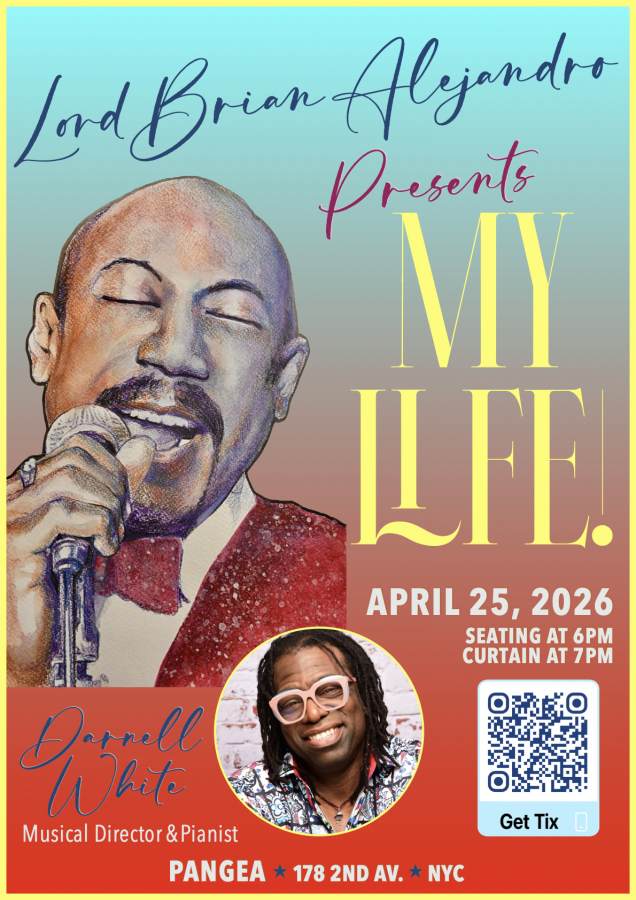 “Lord Brian is a master of the stage—witty, clever, and profoundly soulful,” says collaborator Darnell White. “With the masterful arrangements of Darnell White at the keys, ‘My Life!’ is primed to keep the audience on the edge of their seats, moving from jazz standards to personal anthems with the grace only a lifelong performer can command,” chimes press agent, Jay Michaels.