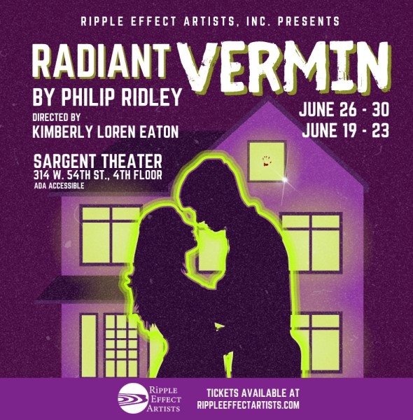 Ripple Effect Artists examines the housing market and homelessness in a most fantastical way with Radiant Vermin by Philip Ridley. This Off-Broadway contract production runs June 19 – 30 at The Sargent Theatre of the American Theatre of Actors 314 W. 54th St. New York City Tickets available at our.show/rv or rippleeffectartists.com