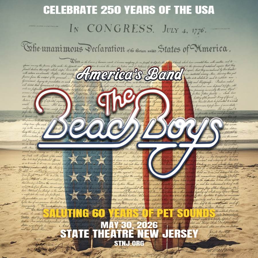 As The Beach Boys mark more than a half century of making music, the group continues to ride the crest of a wave unequalled in America’s musical history. The Beach Boys—who have become synonymous with the California lifestyle and an American icon to fans around the world—are bringing “The Sounds of Summer” tour to State Theatre New Jersey!