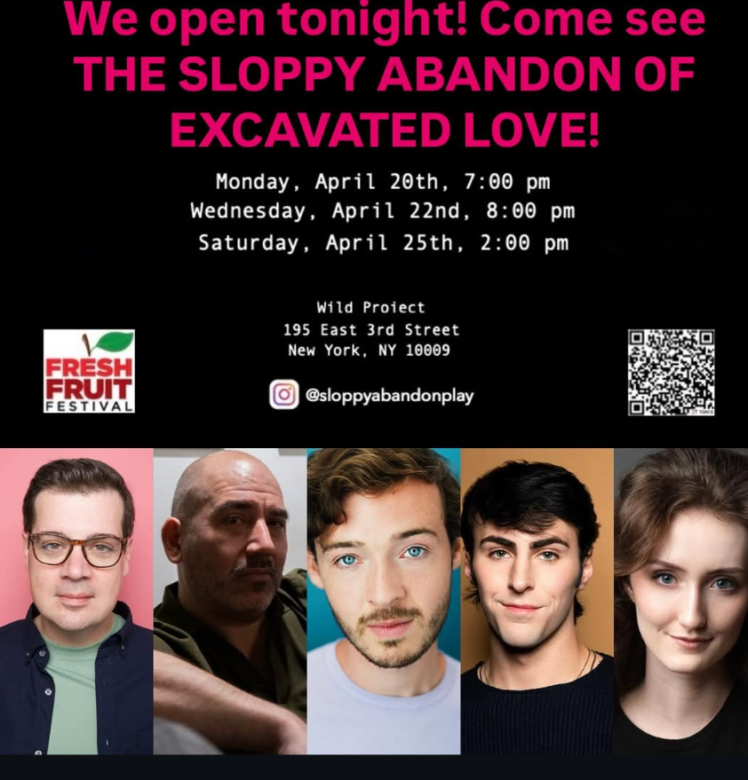 Following the record-breaking success of his previous hits, prolific playwright and Dramatists Guild member Dennis Bush returns to the spotlight to open the 2026 Fresh Fruit Festival Mainstage. His newest work, The Sloppy Abandon of Excavated Love, will kick off the festival on Monday, April 20, at The Wild Project (195 E 3rd St, NYC).