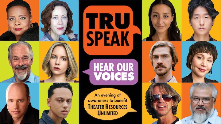 Theater Resources Unlimited (TRU) announces TRUSPEAK… Hear Our Voices! 2025, an evening of virtual short plays, followed by a virtual after-party, set for Sunday, November 16, 2025 from 5–7PM. TRUSpeak is a fundraiser for Theater Resources Unlimited. Admission price is a donation and may be fully tax-deductible to the extent allowable by law. For more information and to purchase tickets, click here.